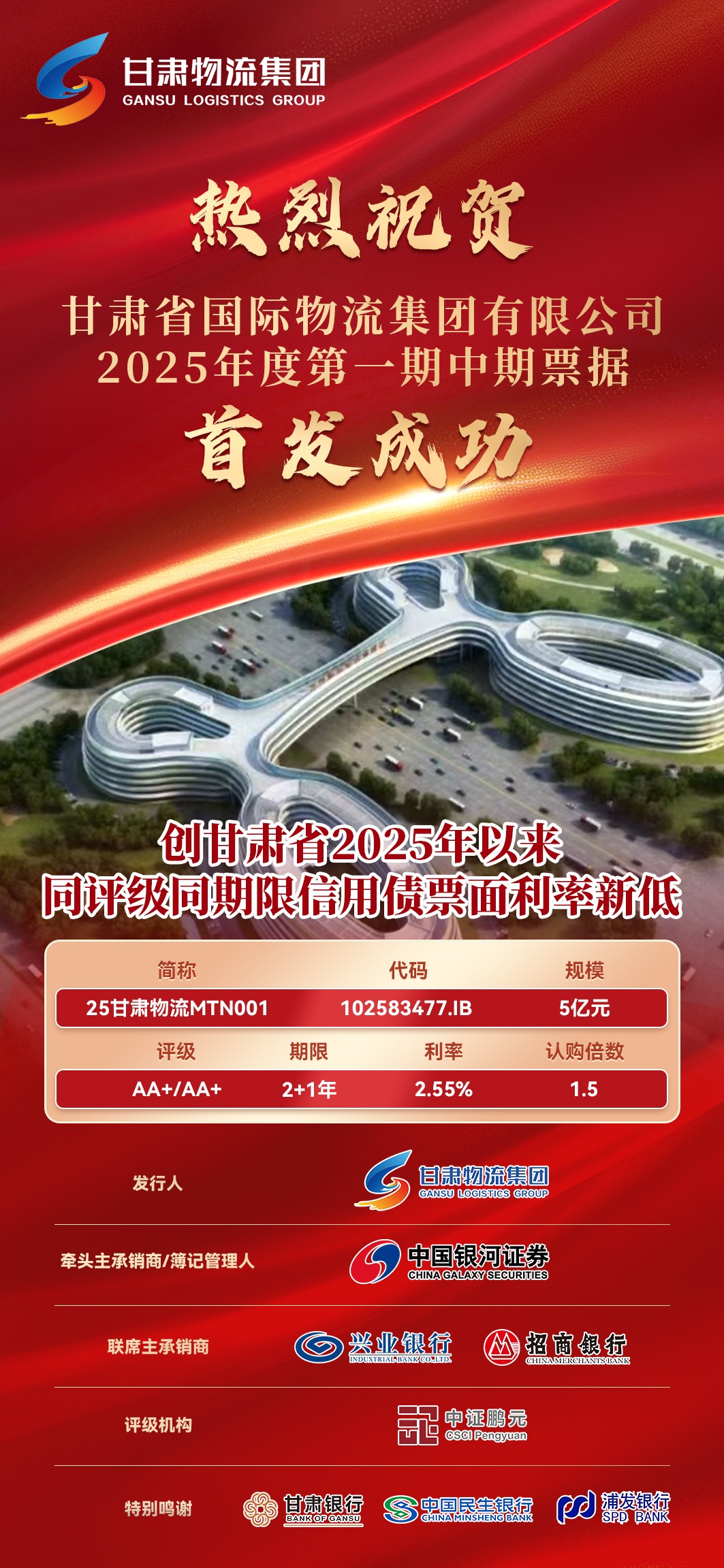 8月15日,甘肅國際物流集團2025年第一期中期票據(jù)首發(fā)成功,這是甘肅國際物流集團首次公開亮相債券市場,標志著甘肅國際物流集團融資能力步入新階段。